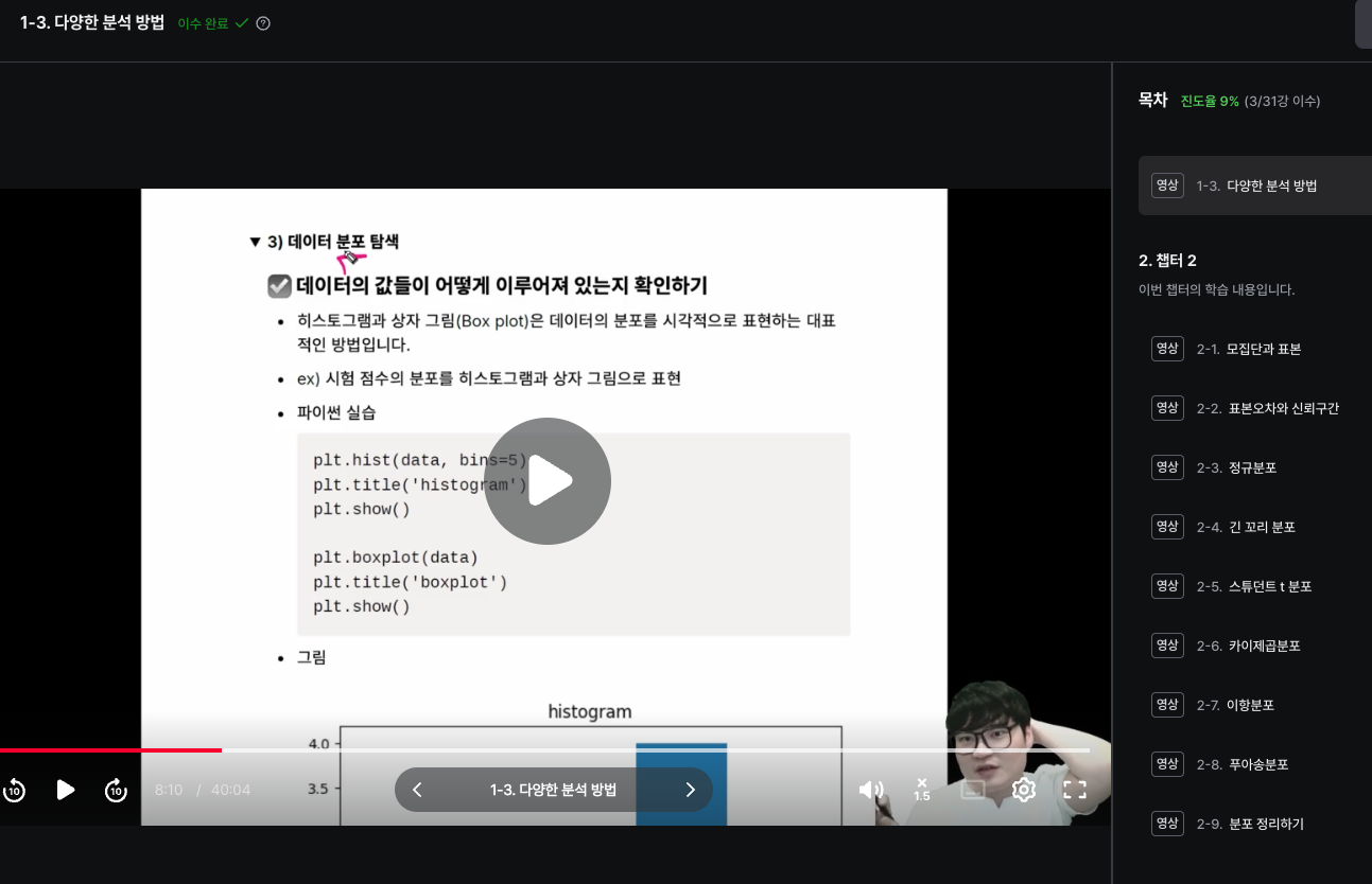 (์ฌ๊ธฐ์๋ ๊ธฐ์ดํต๊ณํ์ ๊ณต๋ถํด์ผ ํ๊ณ , ๊ณง ๋ณธ์บ ํ๊ฐ ์์๋๋ ํต๊ณํ์ ํํฐ๋๋ค ๋์ ๋ฐ์ผ๋ฉด์ ํด์ผ ํ ๊ฒ ๊ฐ๋ค.)- 25๋ 12์ ๋จ์ ์๊ฐ - ํํธ1,2 1ํ๋ ์๋ฃํ๊ธฐ