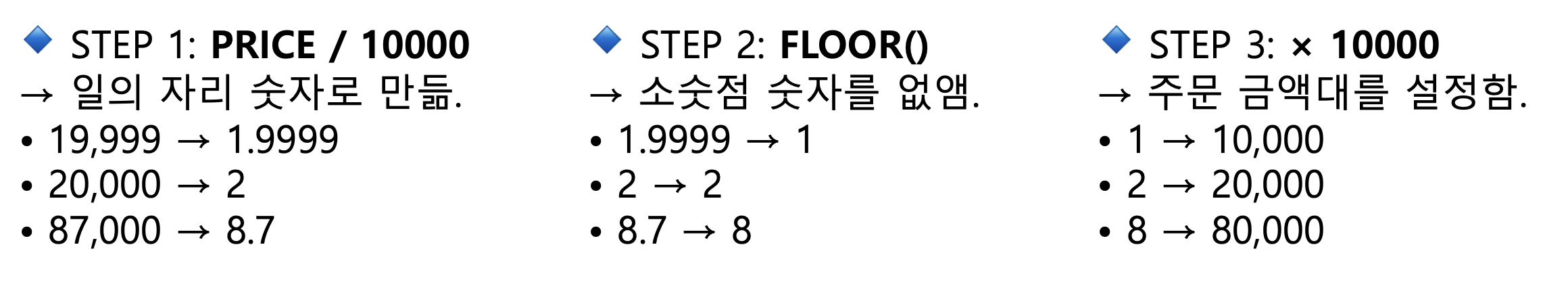 FLOOR(PRICE / 10000) * 10000 AS PRICE_GROUP,
