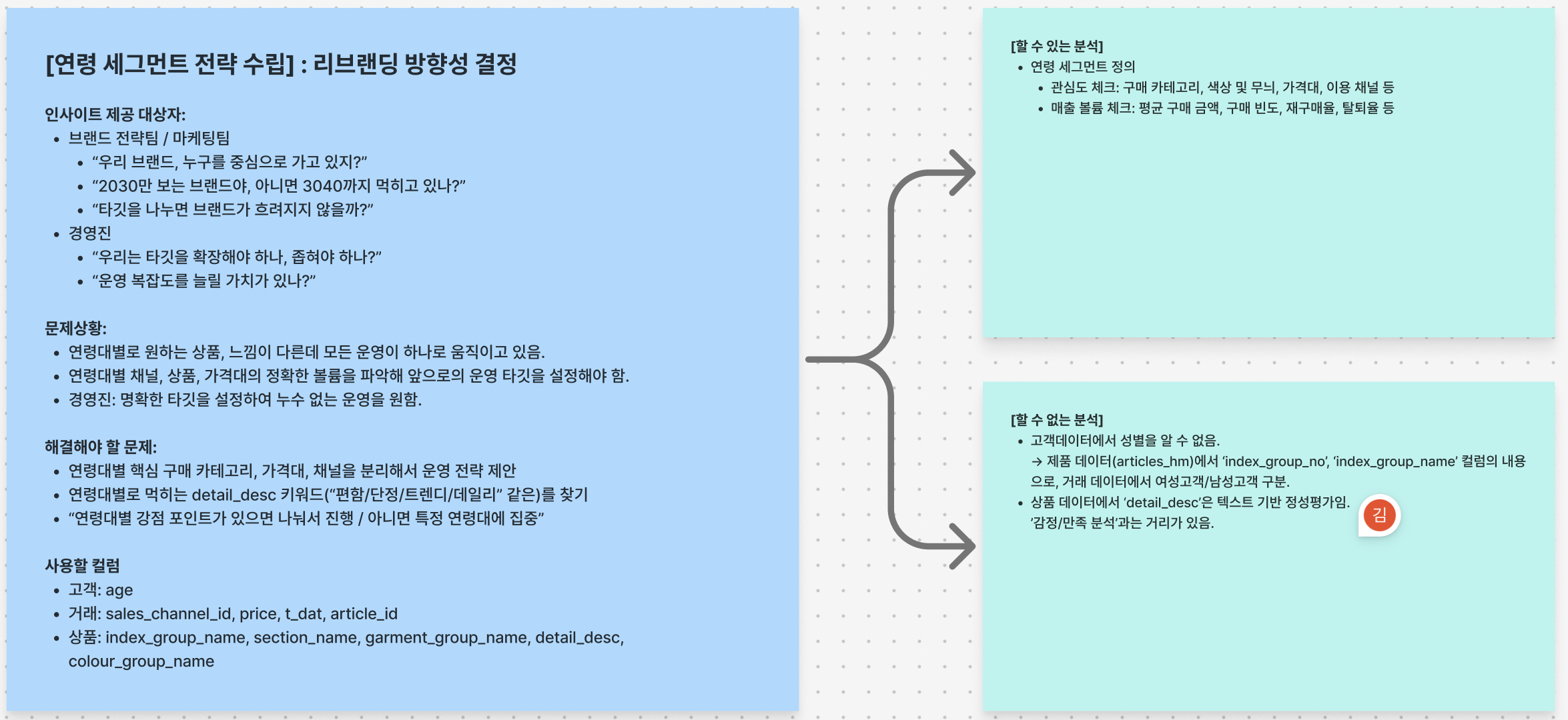 ๋ถ์ ๋ฐฉํฅ๊ณผ ์๋๋ฆฌ์ค๋ฅผ ๋ ๊ตฌ์ฒด์ ์ผ๋ก ์ค์ ํ๊ณ , ์ด๋ค ์ ์ฒ๋ฆฌ์ ํ์์ปฌ๋ผ์ ๋ง๋ค์ด์ผ ํ๋์ง ๊ฐ์๋ฅผ ์งฐ๋ค.